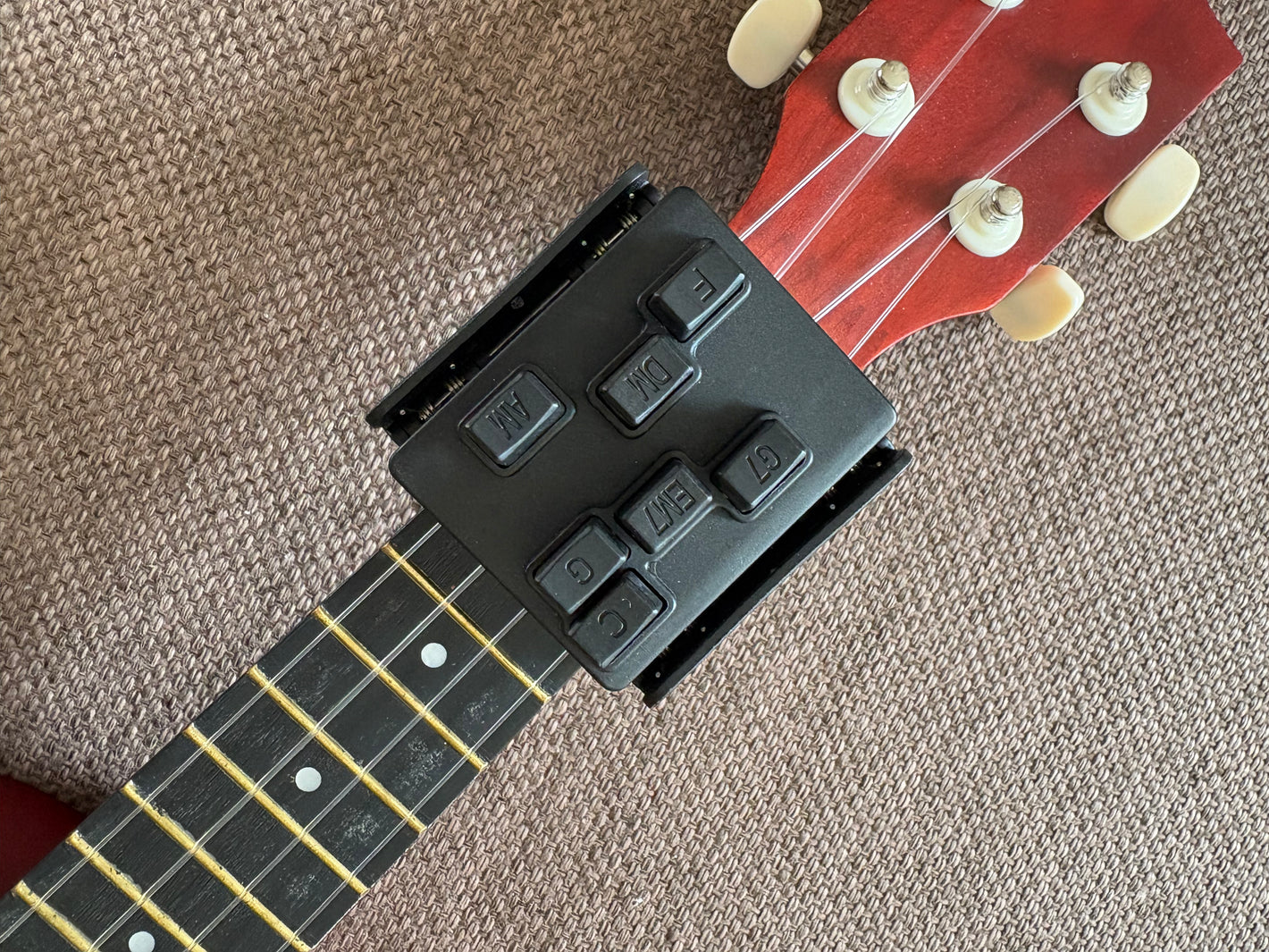 Simply clip on OR twist the screws of the chord presser on the end of the ukulele. EASY AS THAT!